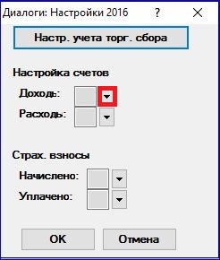 Для настройки своих счетов необходимо указать счета учета Доходов, Расходов, Начисленных и Уплаченных страховых взносов по стрелке