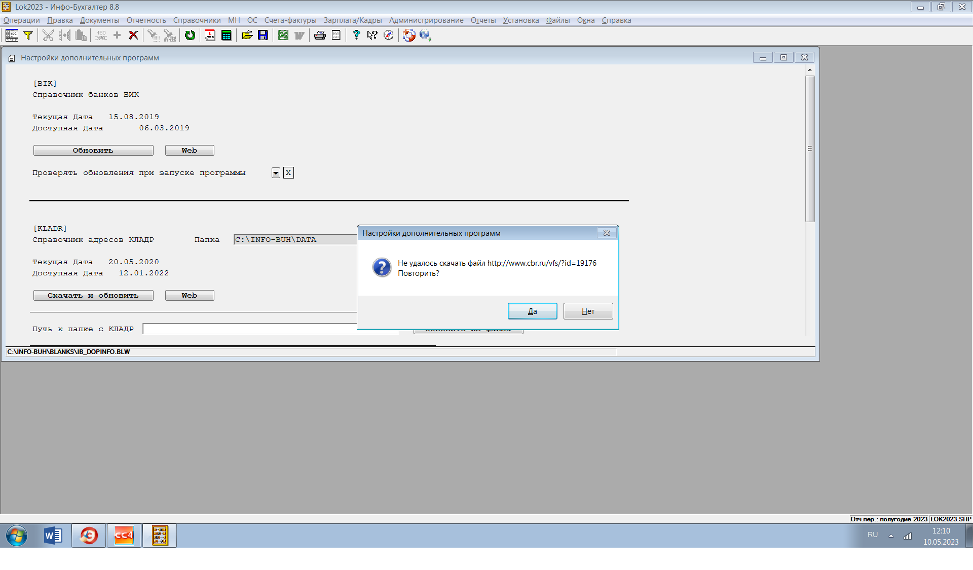 При "Обновлении" - справочник банков БИК - "не удалось скачать файл".