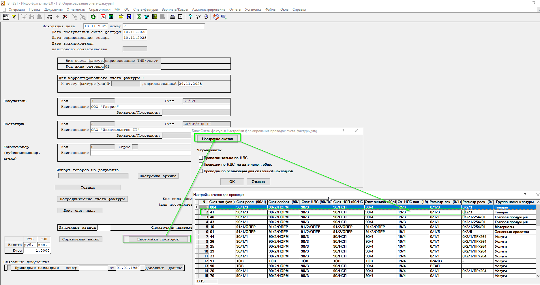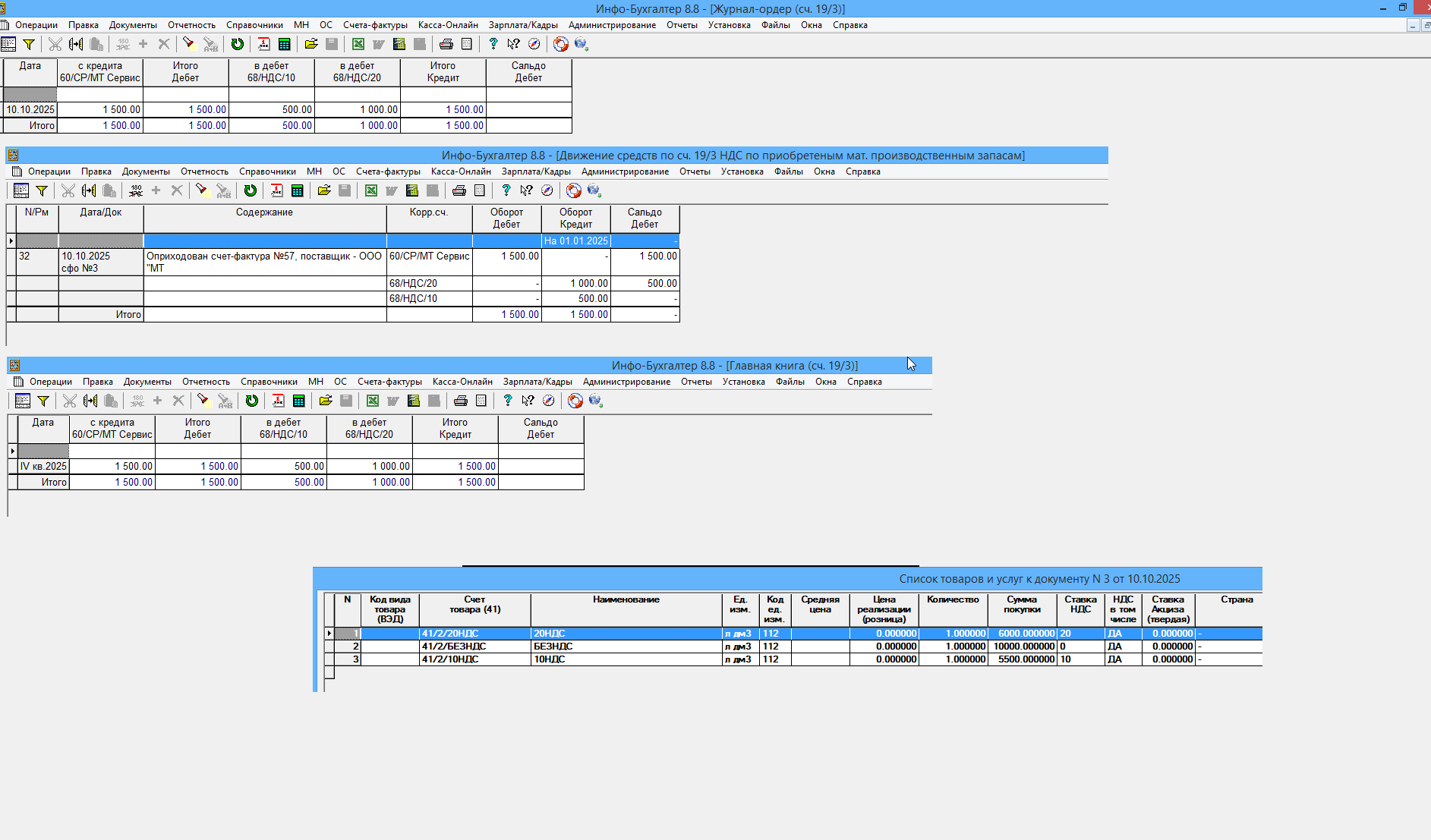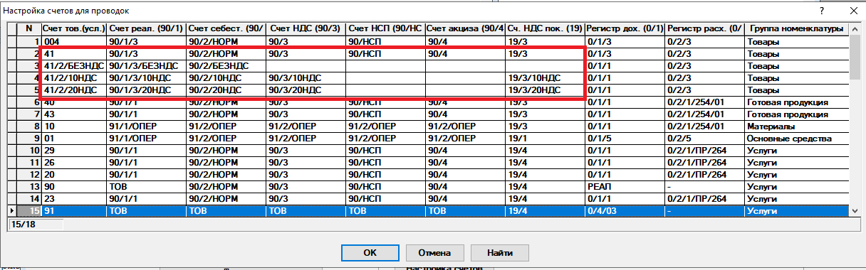 Вот пример аналитики по Кредиту счёта 19/3 в корреспонденции с Дебетом счетов НДС, которые выбираются в соответствии со ставками налога в товарной строке.