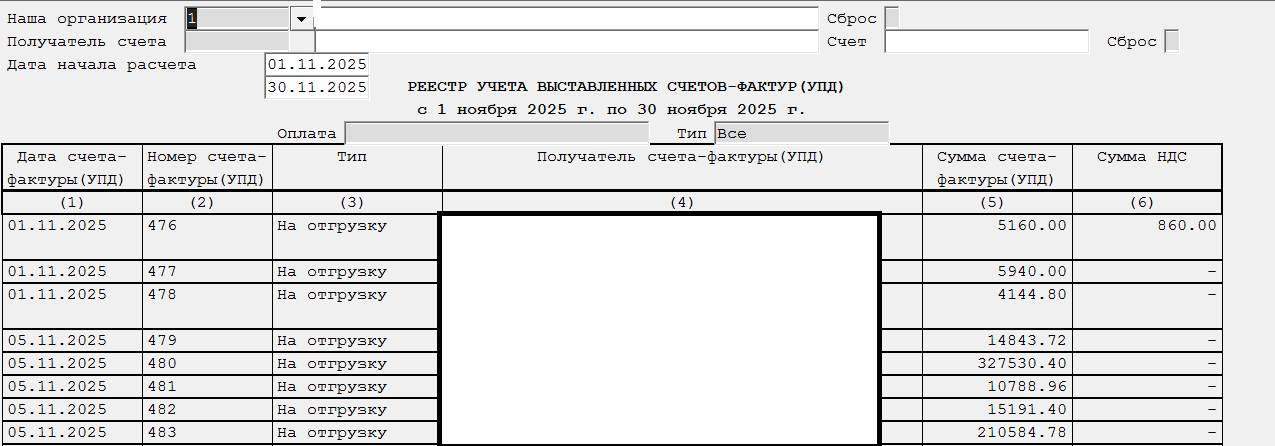 16. Реестр учета выставленных счетов-фактур (УПД).