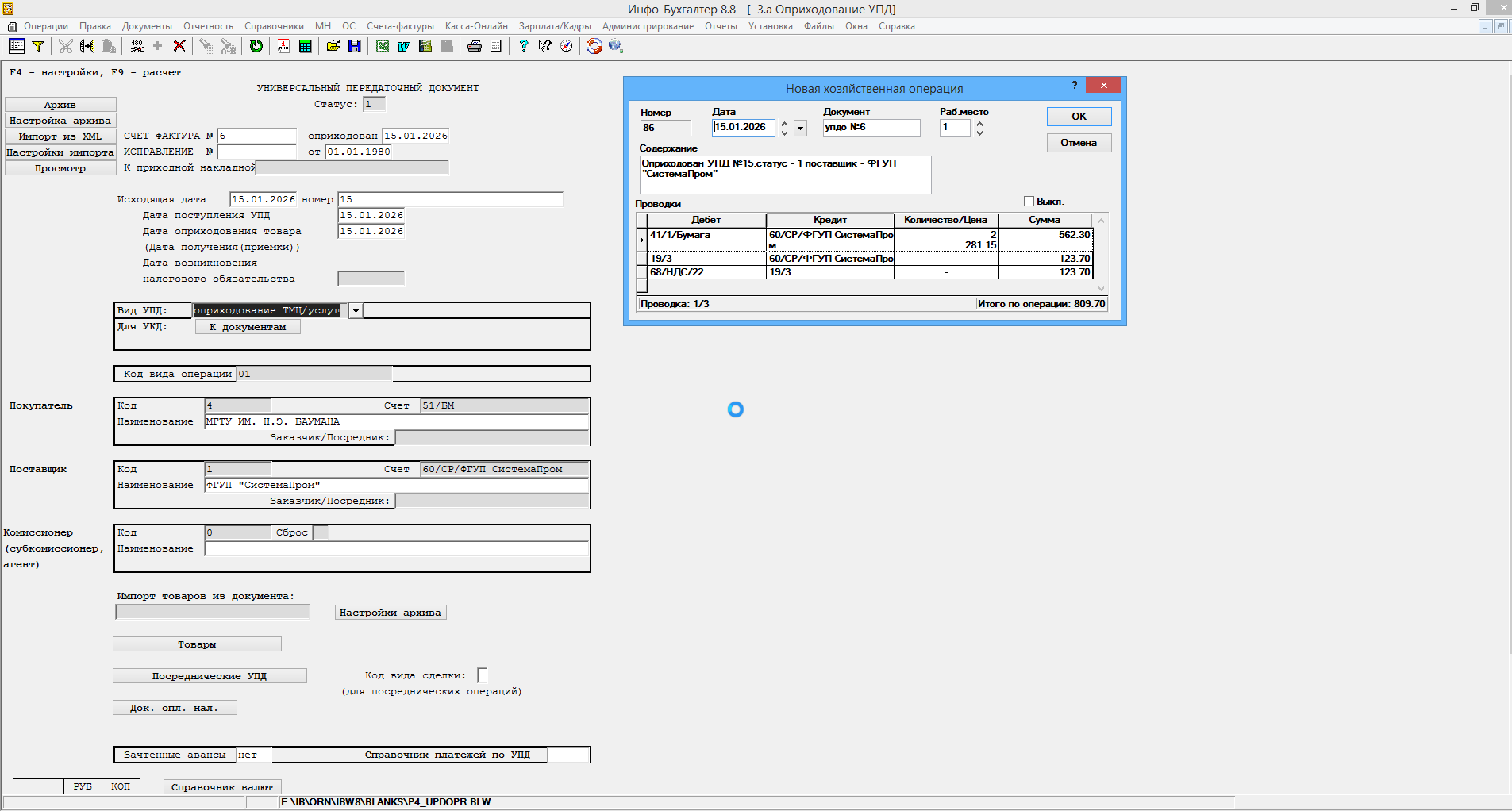 Версия 8.8121 "26.03.02 ПРОФ" локальная.
