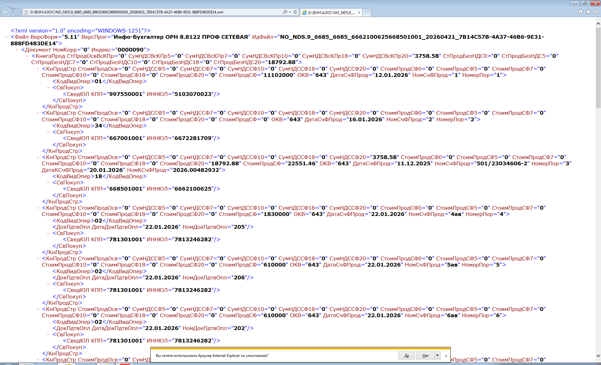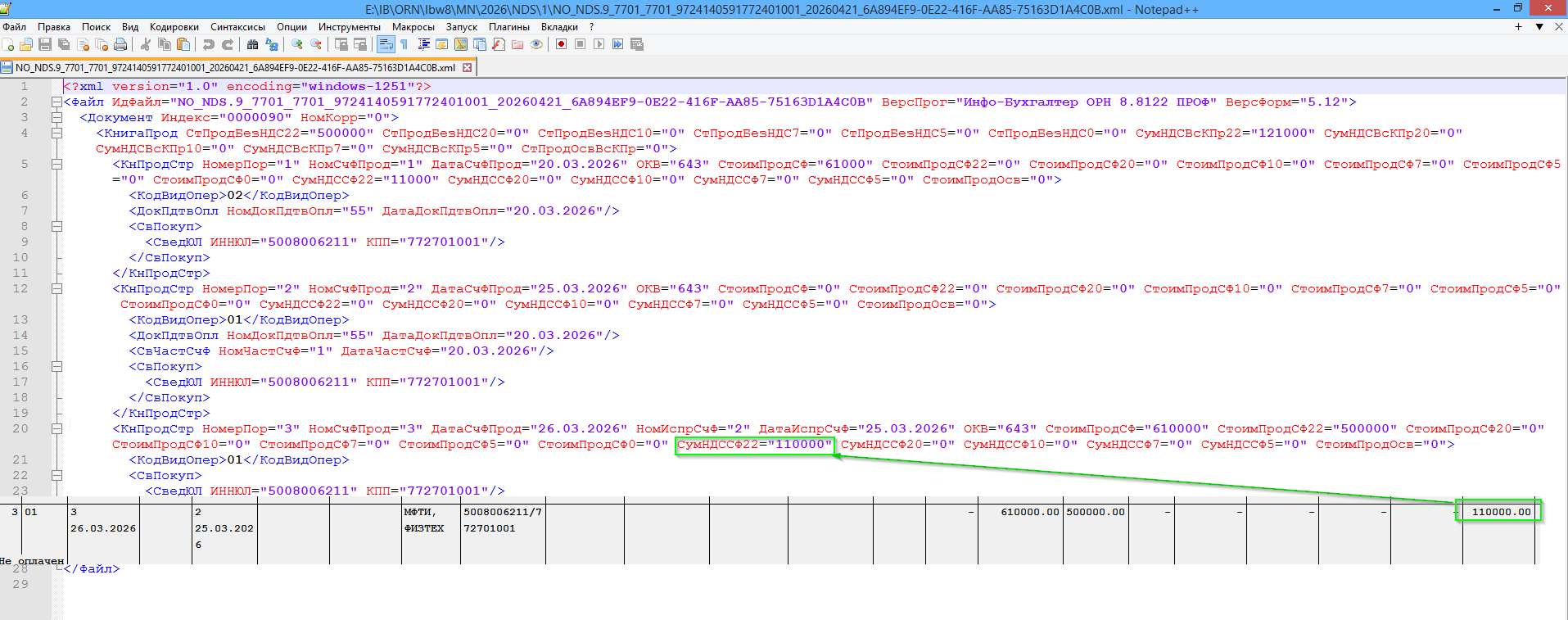 Выгрузка Книги продаж 2026 из Декларации по НДС (Бланк 3.01 (9б)) формируется не правильно.