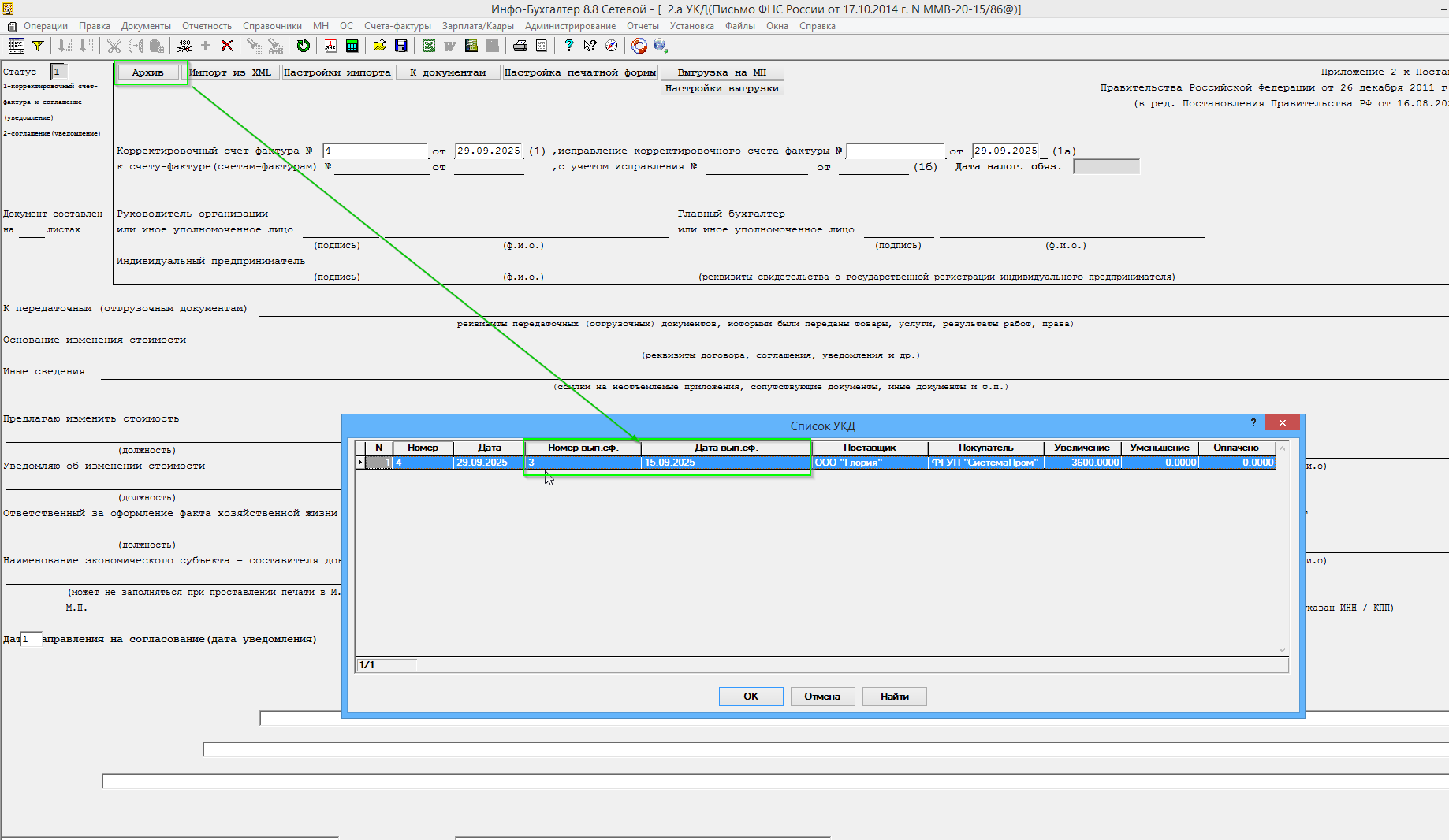 В архиве УПД в бланке она отображается, можно открыть пересчитать, посмотреть.