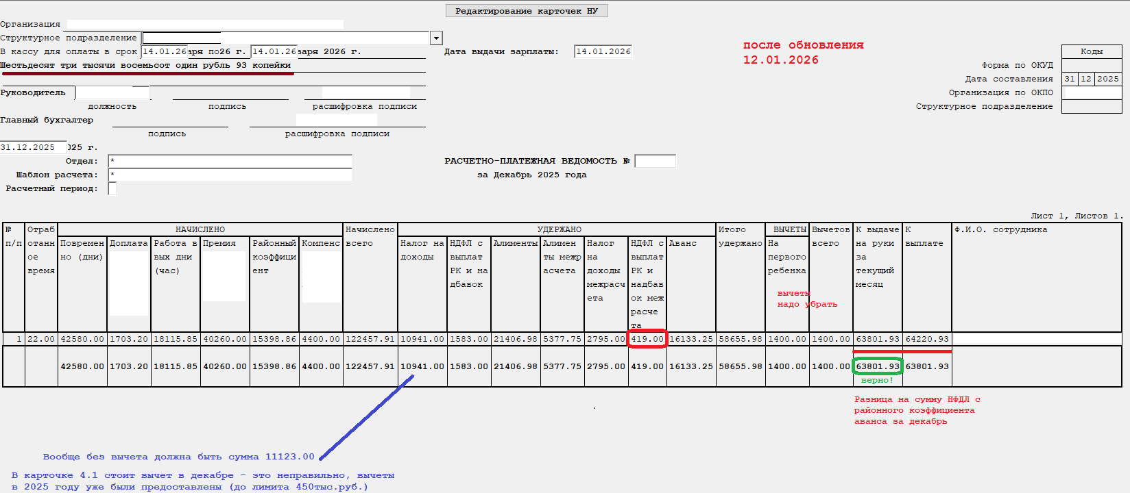 НДФЛ РК с зарплаты за декабрь, выплаченной в январе, считается неправильно.