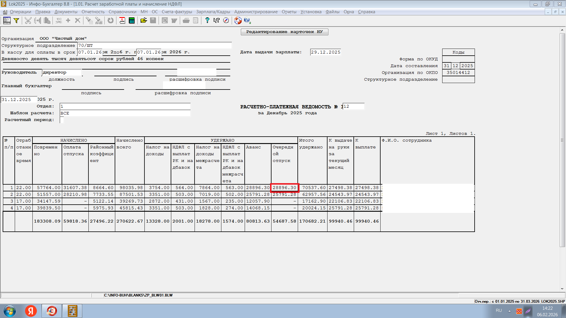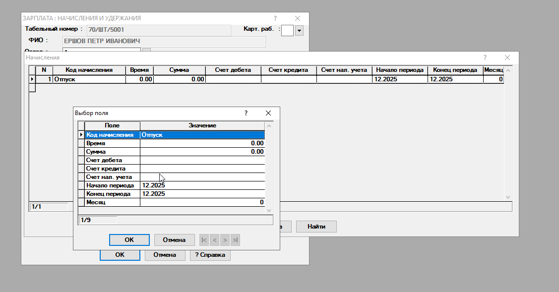 В данных на сотрудника нет выплаты отпуска - 29.12.2025
