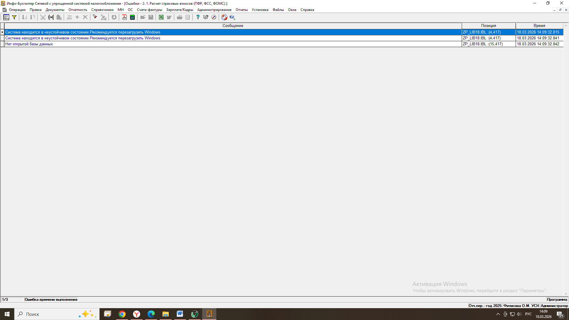 "Система находится в неустойчивом состоянии". Рекомендуется перезагрузить Windows.