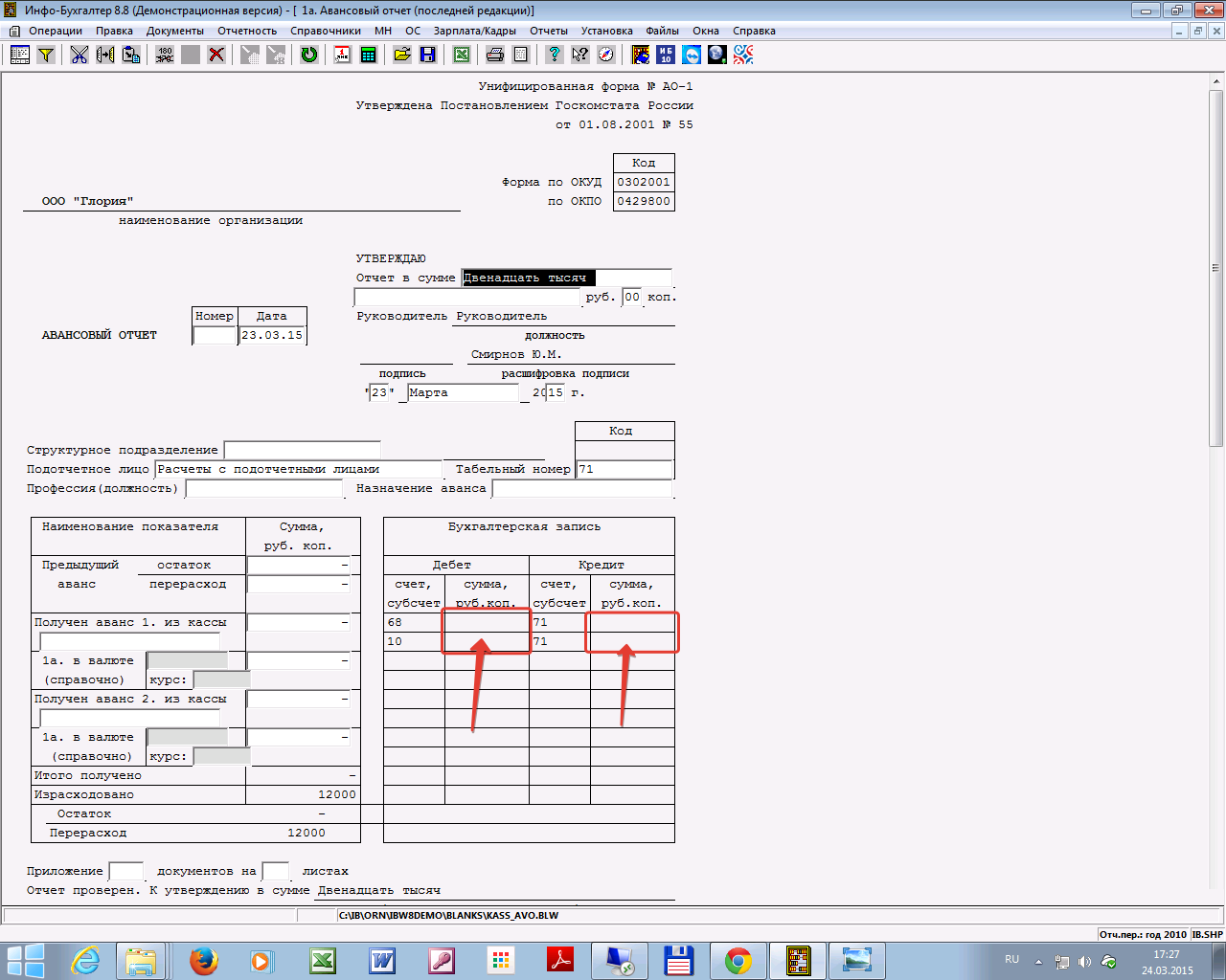 Авансовый отчет (посл. редакции) в версии 8.805 от 18.03.2015 г.