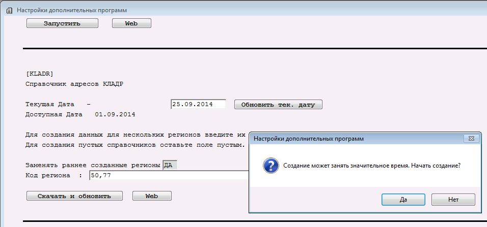 Скачивание и обновление КЛАДР